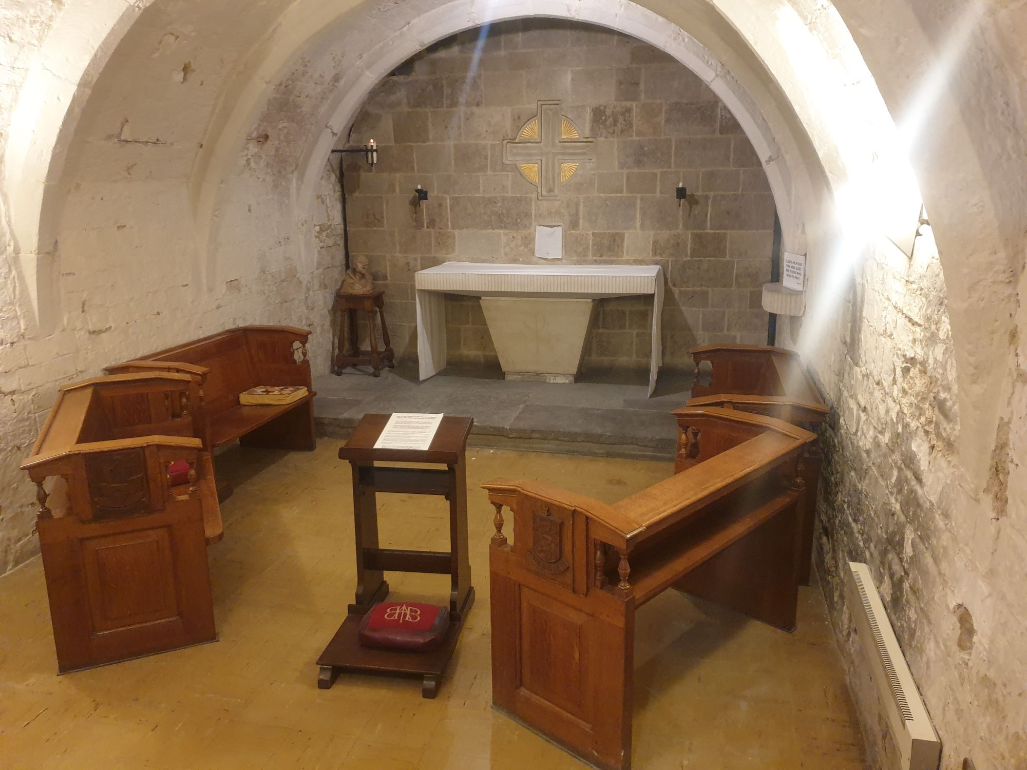 Az oltár mögötti freskón az utolsó vacsora jelenetét láthatjuk, mely 1957-ben készült Brian Thomas művész által. A képen azt láthatjuk, amint Krisztus a kenyeret áldja meg, mellette mind az apostolok, míg Júdás éppen elhagyja a helyszínt hogy Krisztust feladja az őt keresőknek.