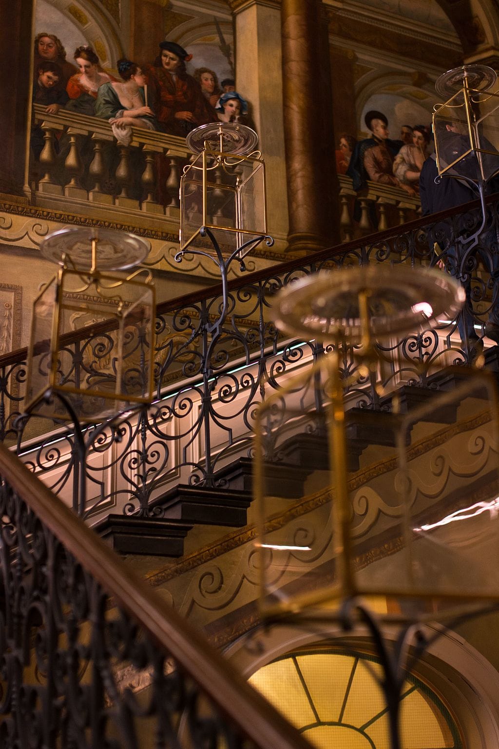 Magának a lépcsőháznak a festése 1726 körül római mintára készülhetett, a megbízatást pedig a kor egyik kiváló festőművésze William Kent (1685 – 1748) kapta, aki egyébként saját magát is a képre festette. Ezt az alakot a mennyezeten találjuk, barna festősapkában amint egy festőpalettát tart a kezében.
