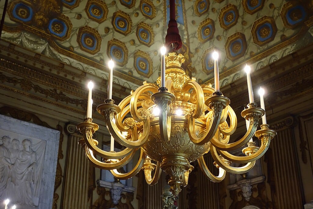 1725-ben a termet I. György király számára vörös damaszttal borították, a fal mentén a fa borítást fehérre festették majd aranyozták és a mennyezetet is freskókkal díszítették.