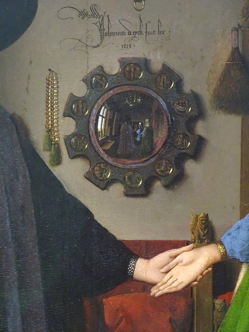 Folytassuk a sort Jan van Eyck részletgazdag festményével, melynek címe Az Arnolfini portré (1434) és a galériában a 28-as teremben található.