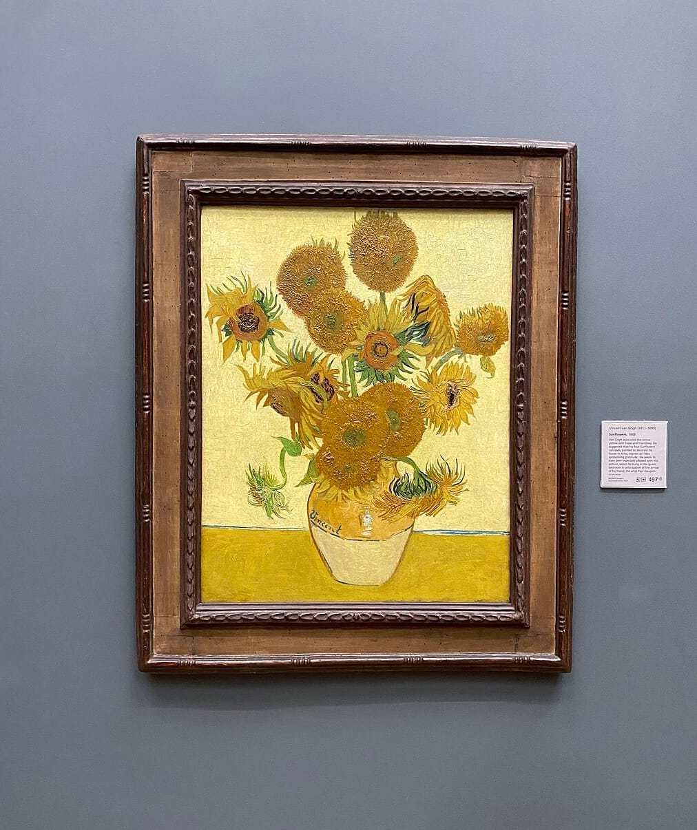 Folytassuk a sort Vincent van Gogh csodálatos festményével, melynek címe Napraforgók (1888) és a galériában a 43-as teremben található.