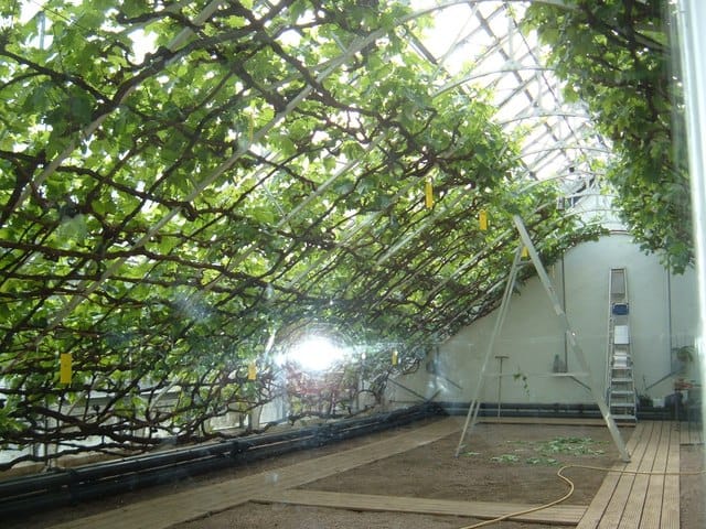 A szőlőt vesszőnként kifeszítve termesztik - lassan be is növi a neki épített üvegházat - ugyanis a viktoriánus kertészek úgy gondolták, hogy ez a módszer nagyobb termést eredményez.