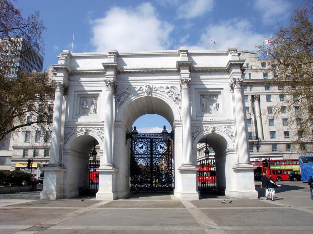 A Marble Arch magyarul annyit tesz, hogy "Márvány Diadalív", ami igaz is, hiszen tervezője John Nash, a Rómában található Konstantin császár diadalívjét vette mintául a Londoni megalkotásakor. A carrarai márványból készült diadalív eredetileg a Buckingham Palota bejáratát díszítette, oda 1828-ban került, de hamarosan, egészen pontosan 1850-ben eltávolították onnan, ugyanis a palota homlokzata teljes átalakításon esett át és így már nem illett a képbe.