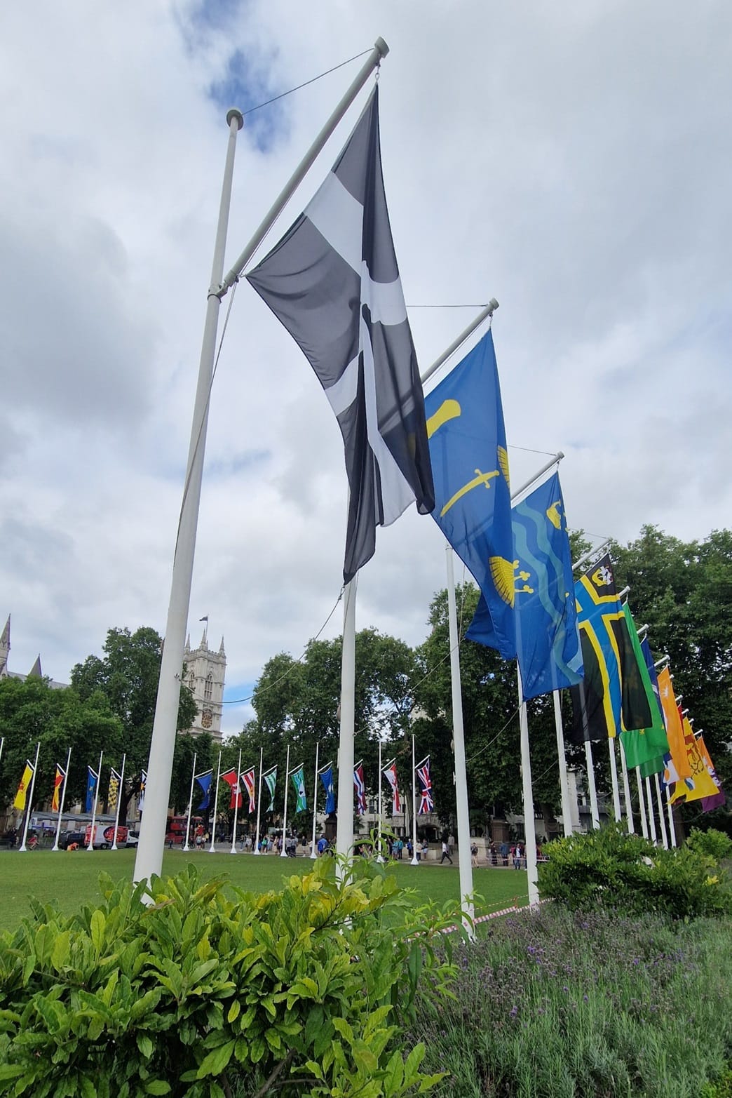 Az idén másoszor lobog a londoni Parlament téren a nem is olyan rég regisztrált aberdeenshire-i megyei zászló, amit 2023. április 22-én jegyeztek be.