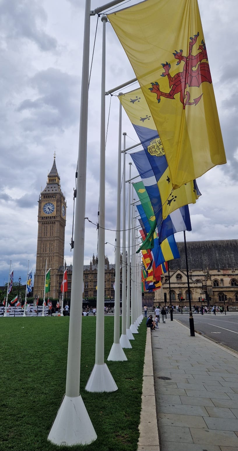 Időnként a londoni Parlament téren, egészen pontosan a Parlament épülete előtti füves tér körül, egyik napról a másikra mindenféle zászlók tűnedeznek fel, majd sokszor pár napon belül ahogy jöttek, el is tünnek.