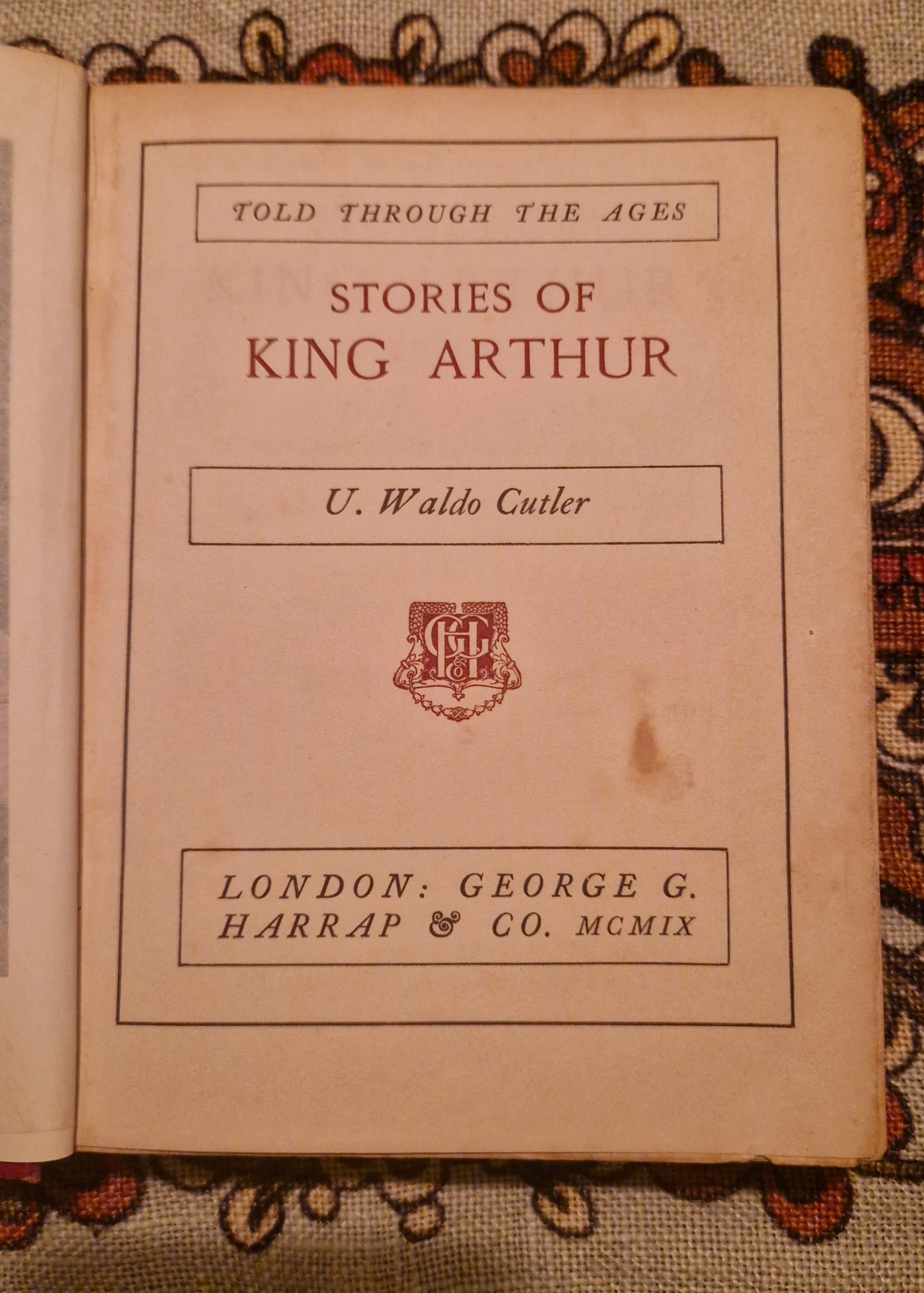 Az én Arthur királyról szóló londoni kiadású, vastag lapos könyvem 1910-ből származik, azaz a bejegyzés írásának idején 116 éves, a kiadója pedig az a George G. Harrap aki a könyvkiadó cégét 1868-ban alapította a városban. Számára fontos volt, hogy magas minőségű, oktatási és kulturális értékű könyveket tegyen elérhetővé a széles viktoriánus közönség számára, melyekben különösen kiemeltnek tartotta az illusztrációk minőségét és a könyvek tipográfiáját.