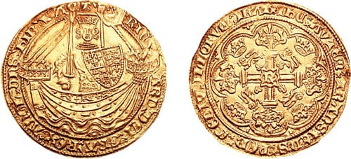 * aranypénz (noble), ami eredetileg 6 shilling 8 penny, azaz 80 penny = ⅓ font értéket képviselt és a frankok logikájával számolva teljesen érthető érték volt és hadizsold, nemzetközi kereskedelem, nagyobb kifizetések esetén használták