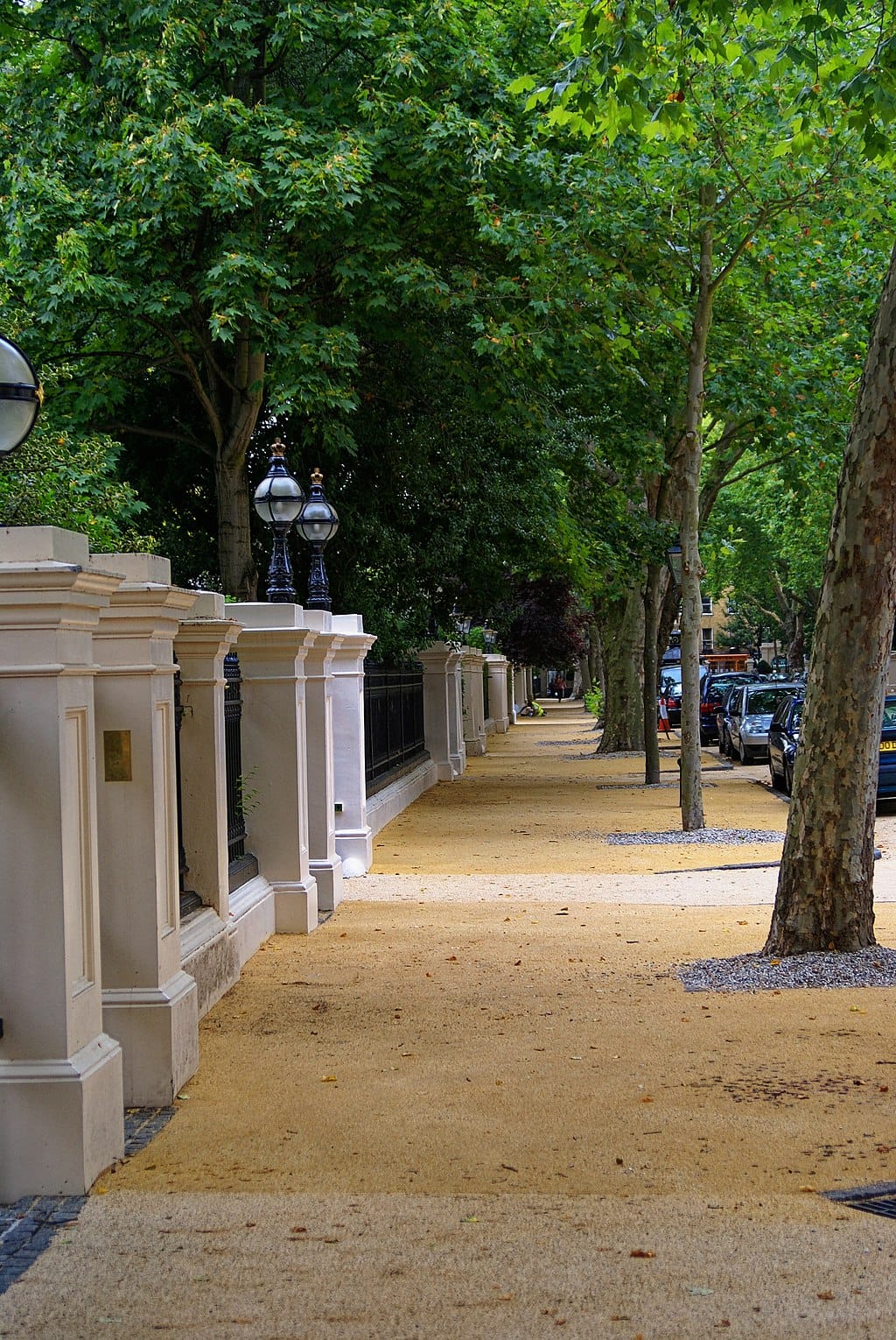A bejárás Kensington Palace Gardens-be nem egyszerű, fegyveres őrök állnak az utca végén akik csak az engedéllyel rendelkező autókat engedik be, valamint előfordulhat hogy akár a gyalogos járókelőket is megállítják.