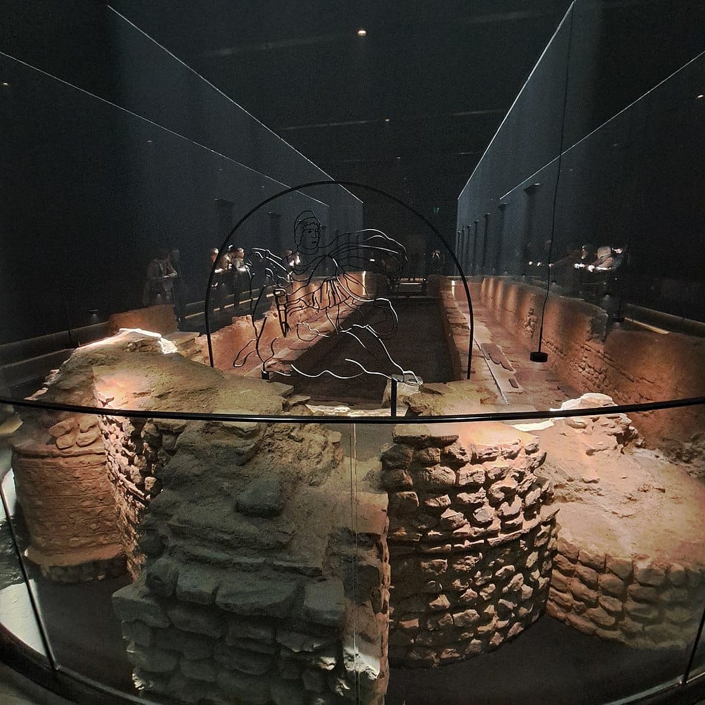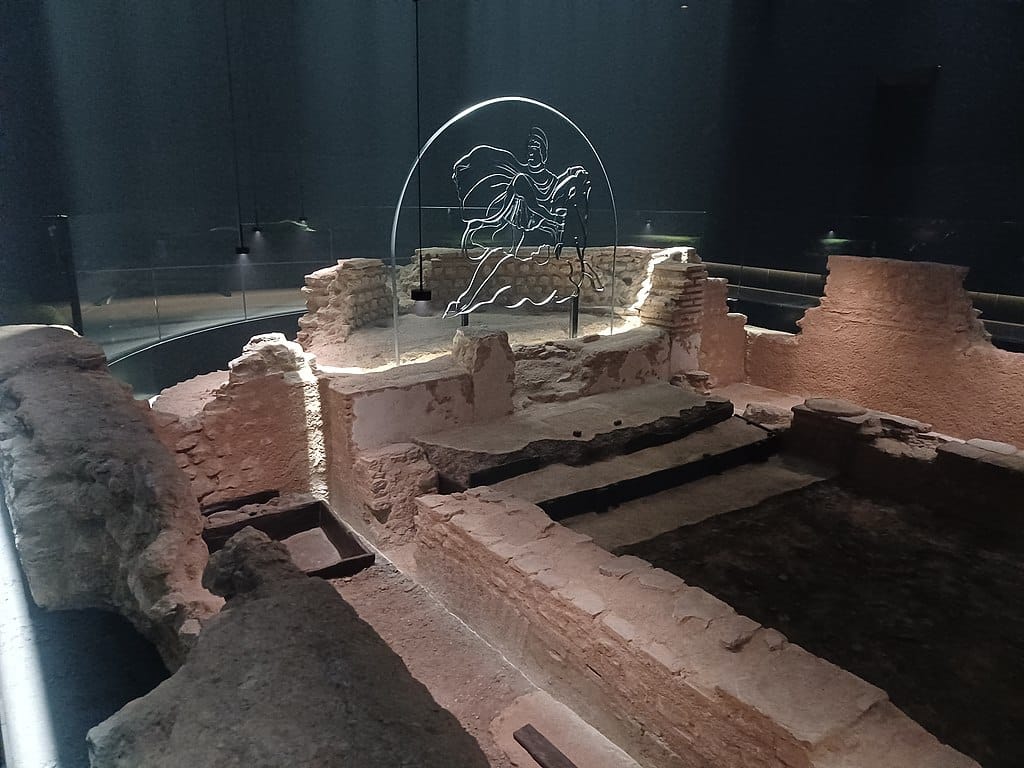 Érdemes egy kicsit korábban érkezni és áttanulmányozni az utcaszinten elhelyezkedő aprócska kiállítást, ahol az ásatás során előkerült tárgyakkal találkozhattok, valamint egy szinttel lejjebb, a bejárat előtt elhelyezett interaktív képernyők pedig magának Mithrasnak a történetébe avatnak be.