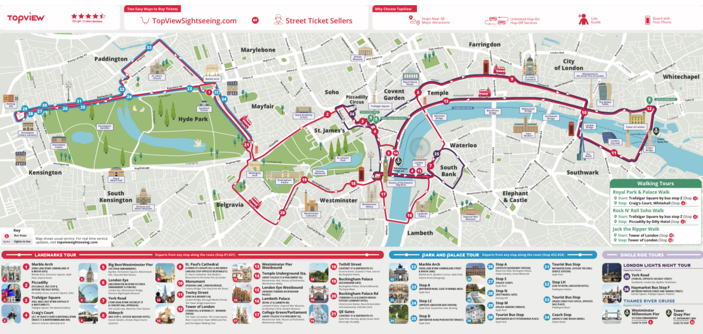 A cég 2021 óta szállítja a turistákat Londonban, a nagyon hasonló, felül félig nyitott városnéző buszain. Jegyet elsősorban online tudtok vásárolni a bejegyzés elején megadott linken, valamint a buszok megállóiba telepített személyzettől, vagy esetleg a buszra való felszálláskor a sofőrnél (csak bankkártyával).