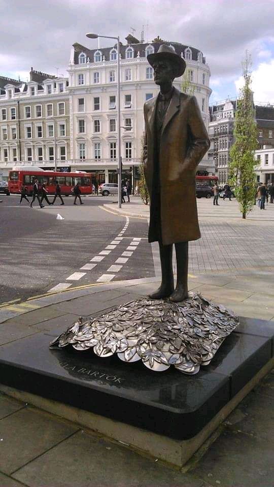 A kétméteres bronz szobrot, amely felöltőben, kalapban, zsebre dugott kézzel ábrázolja a magyar zeneszerzőt, eredetileg 2004-ben leplezte le a Londoni Magyar Kulturális Központ - Blassi Intézet és a Bartók munkásságának angliai népszerűsítéséért sokat dolgozó angol-walesi komponista, Peter Warlock (1894-1930) nevét viselő társaság.