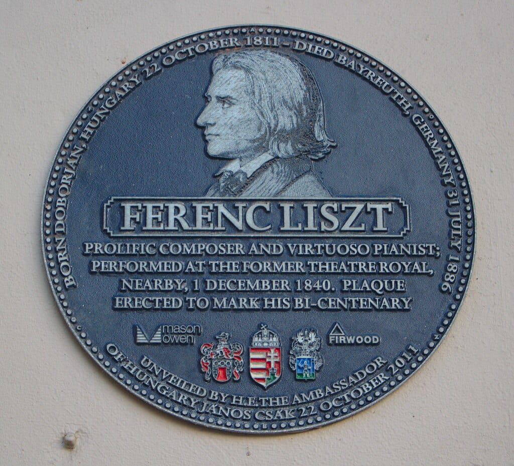 Liszt Ferenc emlékét azonban Anglia szerte őrzik, pl. Liverpoolban, a Williamson Square nevű téren működő Play House Színház épületének falán. Az emléktáblát 2011. október 22-én, Liszt Ferenc születésének 200. évfordulója alkalmából avatták fel, mivel a világhírű zeneszerző 1840. december 1-jén, az akkor ugyanezen a téren álló, még Theatre Royal nevű színházban koncertezett.