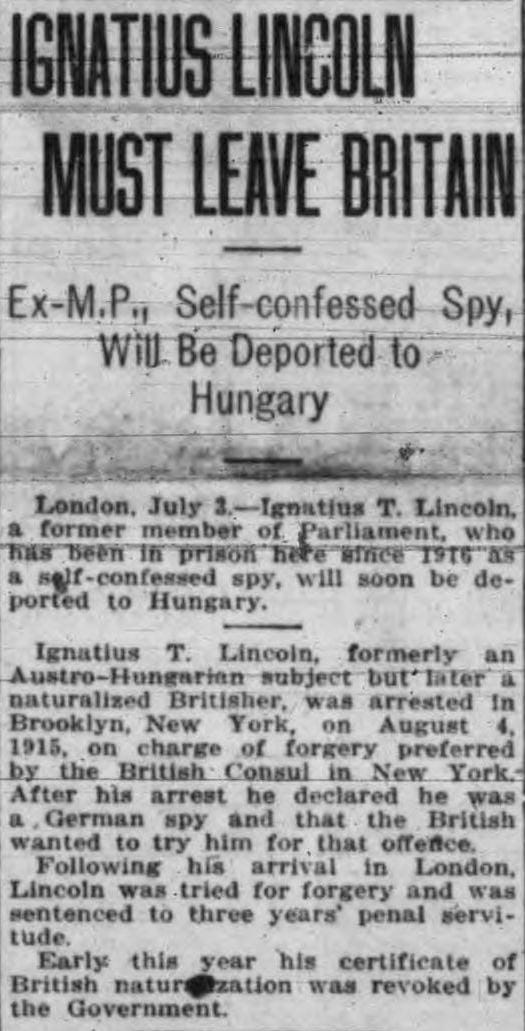 Ezután egy darabig kereste a helyét Európában, több országban is feltűnt, sőt mi több, az első világháború alatt hírszerzési kapcsolatokra is szert tett, mígnem végül 1914-ben Amerikában kötött ki, ahol teljesen új identitással és új történetekkel próbált újrakezdeni. Nagy valószínűséggel itt is politikai és üzleti kapcsolataira hivatkozva próbált pozíciót szerezni, magát egy igen befolyásos emberként állította be, sőt mi több újra kétes pénzügyi és üzleti ügyletekbe kezdett és befektetési lehetőségeket kínált.