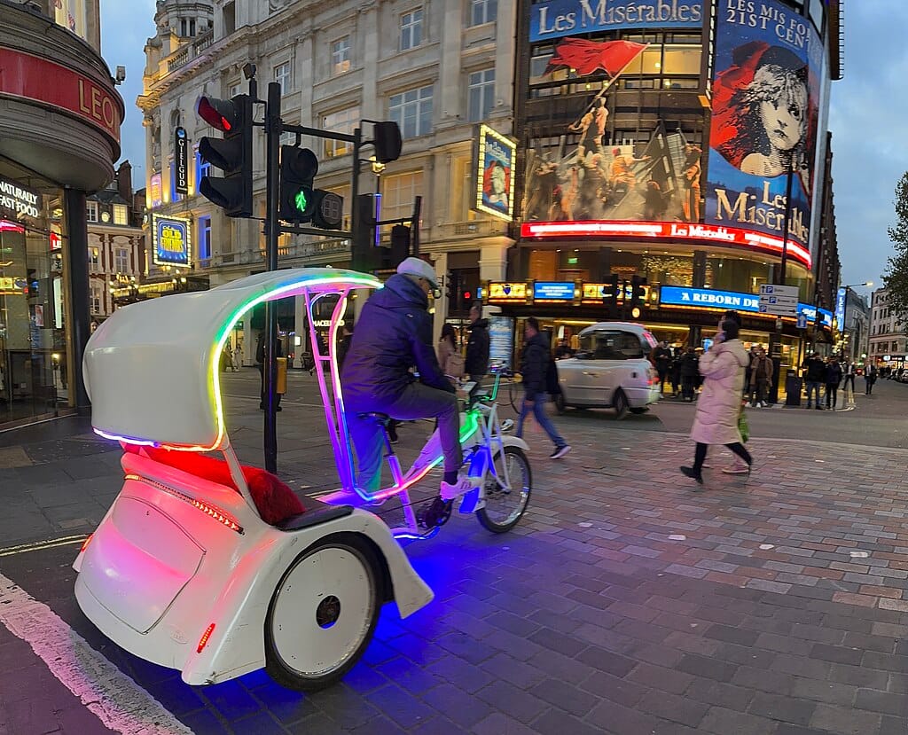 Hasonlóan a szervezett koldusokhoz, sajnos a londoni riksásoknak (Pedicab = kerékpárral hajtott kis kocsik, városnéző turistáknak) sincs túl jó hírük. Sokszor a viteldíj a beszálláskor nem egyértelmű, amit ti teljes árnak véltek, azt a végén személyenként számolják, avagy jóval több lesz a végállomáson a kért összeg mint a szóbeli megállapodásban említett. Ha nem fizetnétek szívesen, akkor igen agresszíven is felléphetnek, sőt hirtelen mindig ott terem néhány másik riksás is "erősítésnek". Erre a közjátékra semmi szükség, ha várost néznétek üljetek tömegközlekedésre, némelyik busz útvonala felér egy városnézéssel, ezekről ide kattintva olvashattok bővebben.