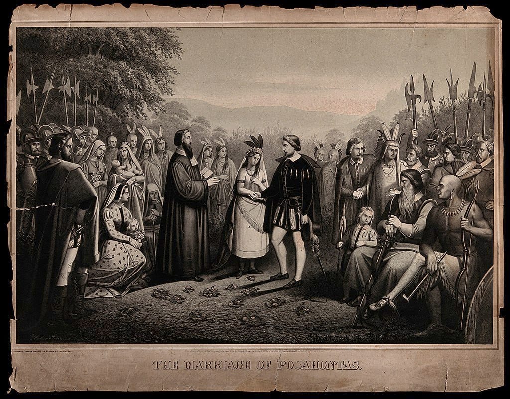 Míg Pocahontast az angolok fogságban tartották, a település tiszteletese angol nyelvre és a keresztény vallásra tanította, ahol azután megismerkedett egy bizonyos John Rolfe nevű angol ültetvényessel, aki elsősorban dohánytermesztéssel foglalkozott és hamarosan egymásba is szerettek.