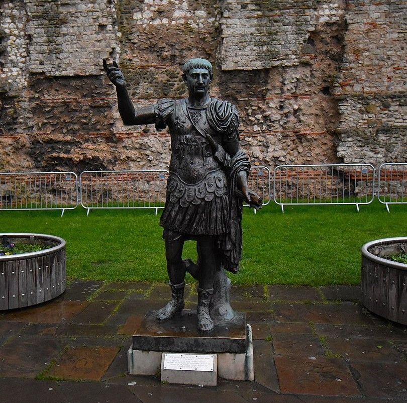 Furcsa abból a szempontból, hogy egy római viseletbe öltözött alakot ábrázol, aki nem más, mint maga Trajanus római császár. A történet azonban még érdekesebb lesz, ha azt is megtudjuk, hogy Trajanus sohasem járt a szigeten. Akkor tulajdonképpen miért is van neki szobra Londonban?