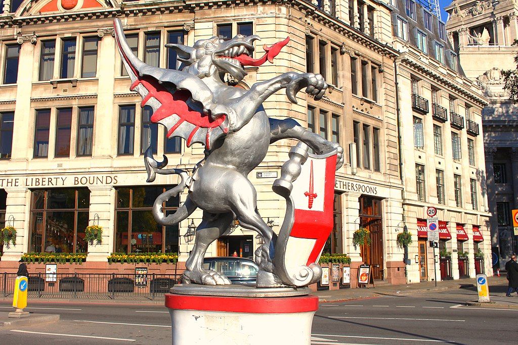 - A City of London-ba bevezető utak mentén egy-egy méretes sárkány szoborral találkozhatunk, ők védelmezik a City-t a betolakodóktól. Összesen 13 van belőlük, mind öntöttvasból készültek, ezüstre festett testtel, a náluk lévő pajzson, a szárnyukon és a kinyújtott nyelvükön piros árnyalattal. A náluk lévő pajzson a City of London címere látható.